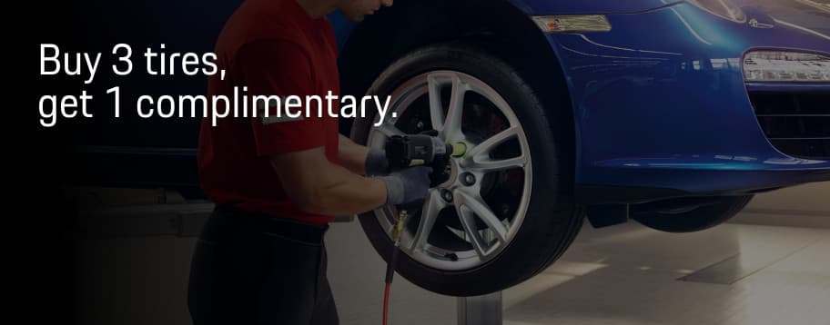 *Valid only at Porsche Sacramento. Tire sizes and prices may vary by model. Discount will be applied to the tire of lesser value. Supplies and tax are additional. Please present offer at service write-up. Cannot be used for an additional discount on existing special or discount. Please see advisor for details. Cannot be used on past repairs.